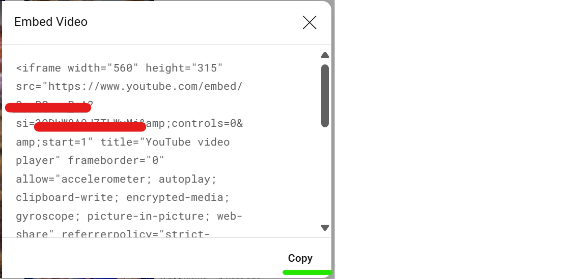 - or use the Embed Tab - copy & paste into the You Tube Video - Add video grey Tab