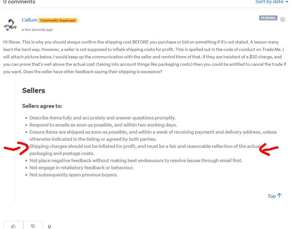 Hi Steve. This is why you should always confirm the shipping cost BEFORE you purchase or bid on something if it's not stated. A lesson many learn the hard way. However, a seller is not supposed to inflate shipping costs for profit. This is spelled out in the code of conduct on Trade Me. I will attach picture below. I would keep up the communication with the seller and remind them of that. If they are insistent of a $30 charge, and you can prove that's well above the actual cost (taking into account things like packaging costs) then you could be entitled to cancel the trade if you want. Does the seller have other feedback saying their shipping is excessive?