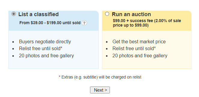 The actual listing part is okay, however it will only run for a limited time and I would like it set up as per motor vehicles where it runs until sold.