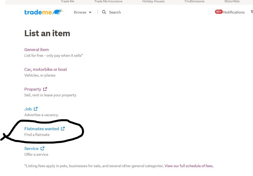 Hello Hayley. I know it can be a bit counter-intuitive. But you don't go to Property first. Just hit "Start a listing" from the main page and the flatmate listing option is there. Like this...........
