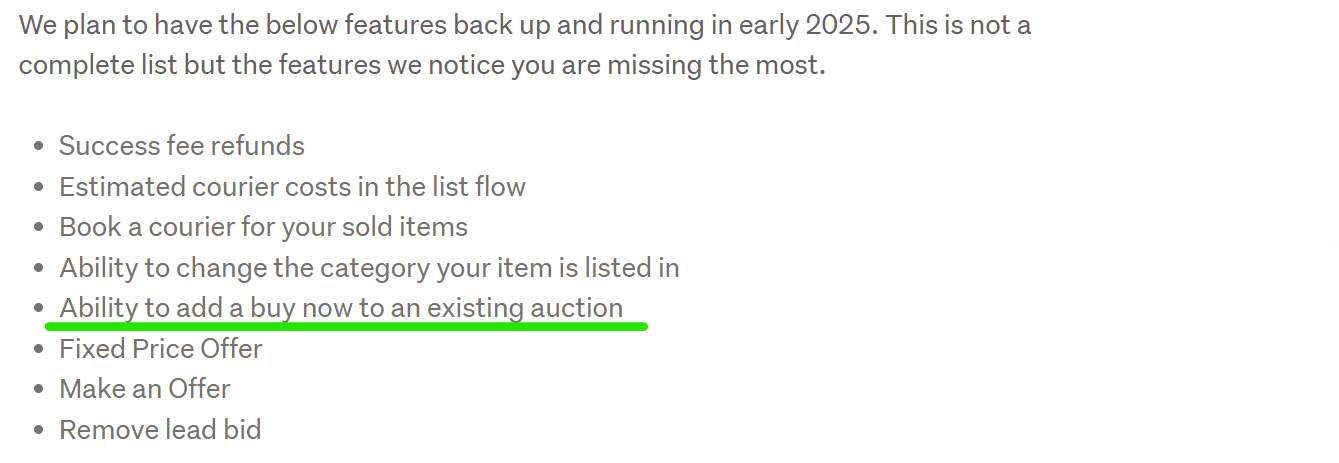 Currently as Members we can't add a Buy Now to a Live Listing However if you do a manual Relist you should be able to add the Buy Now as Relisting. - This is one of the functions the company are aiming to have reinstated early this year.