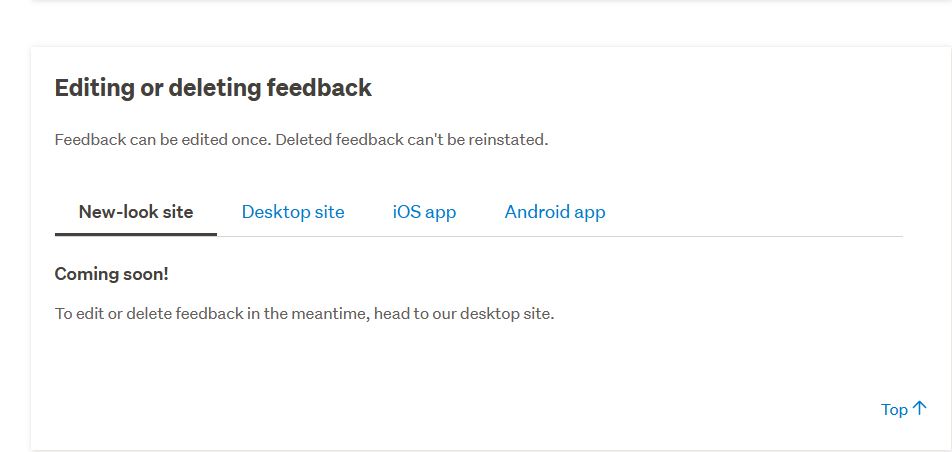 UNABLE TO EDIT OR DELETE FEEDBACK I PLACED