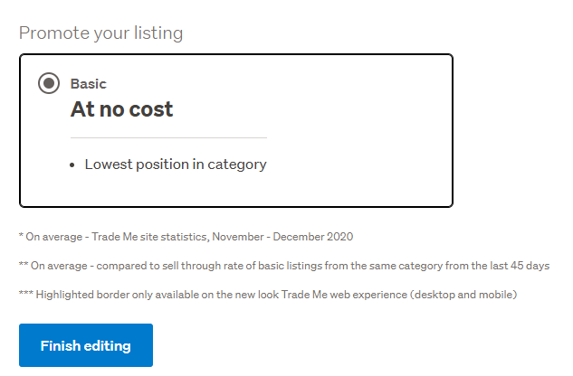 Kia ora Matthew, if the listing has bids it can't be edited or promoted. If you're wanting to add promotional features to a new listing or one without bids, and it's not working and you are on the app, try using the desktop site or vice versa. There is also info on our help page, or you can get in touch with the team and someone can take a look for you.