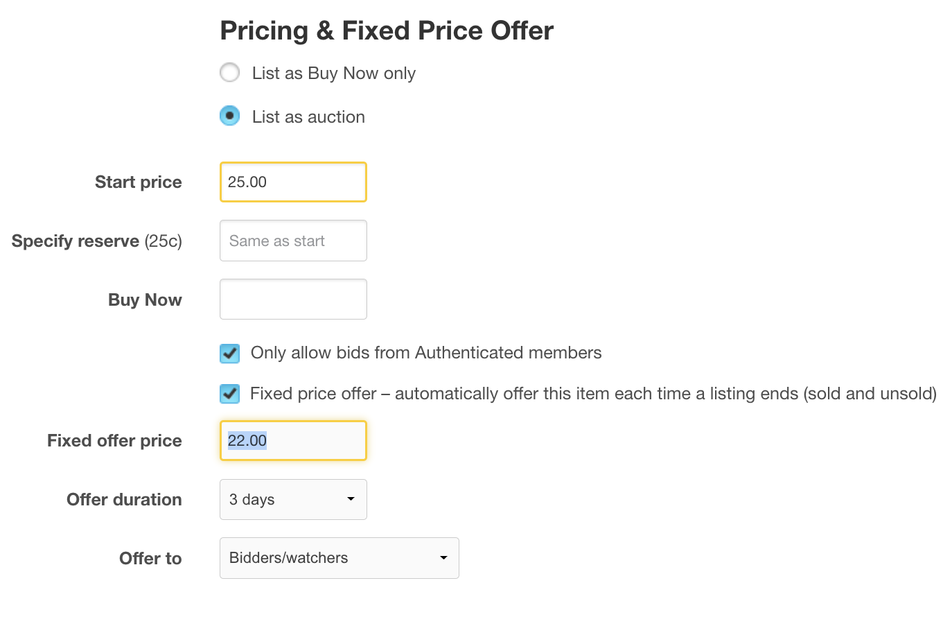 I don't get the wording on this fixed price offer section. Why would you do a fixed offer on a sold item and offer it to bidders. Isn't the point of Fixed Price offer that you want to reduce if not sold. If someone has bid on the auction, they win. Why would you do a Fixed Price offer post auction?