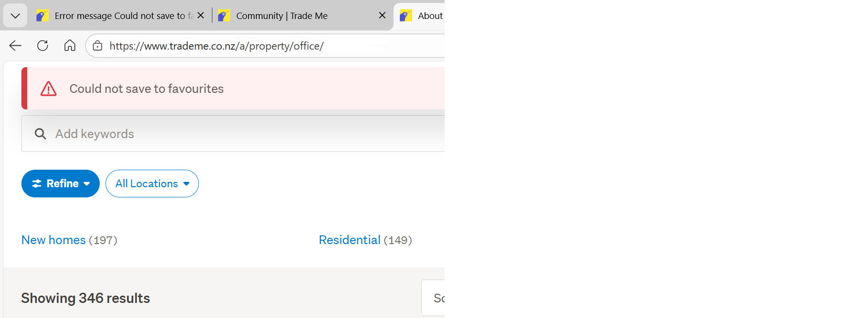 Error message Could not save to favorites - Real Estate sellers