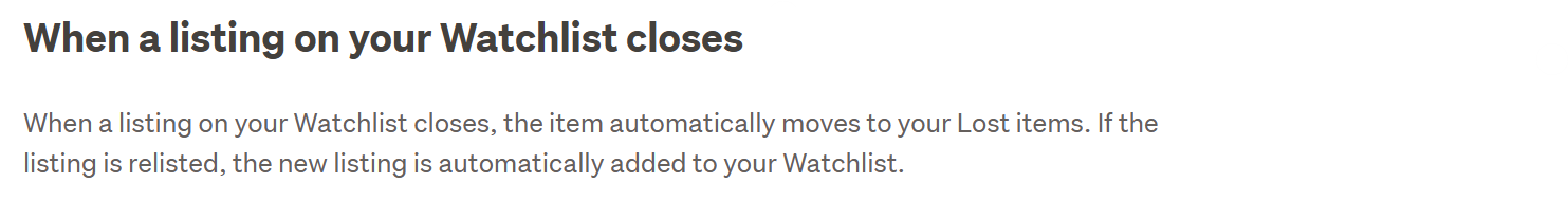 ADD: - A further 4 items from In-Trade Sellers which have been Relisted are not back in my Watchlist. - There is no rhyme to reason as items are from different In-Trade Sellers.