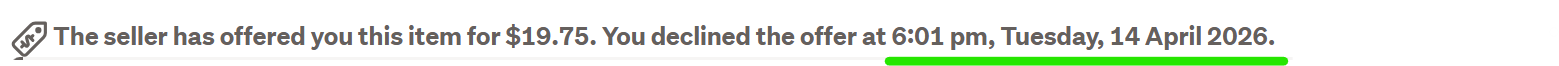 Declining FPO's automatically removed the Listings from my Watchlist However the time I declined is incorrect - the following 3 show we haven't reached that time of day yet. - They were declined after 10:am