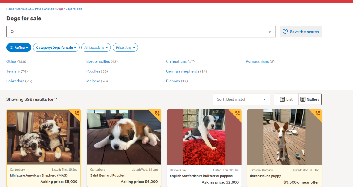 Or, the sub-categories in the dogs for sale category DO have the cat save button, just not the main top level category.