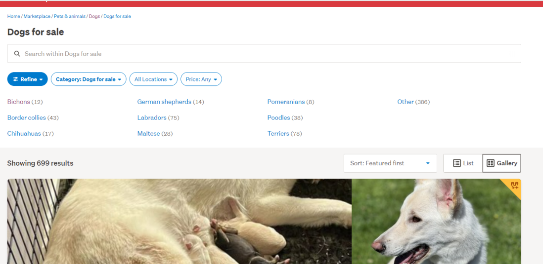 The main Dogs for sale category like here, will not save as a fav category