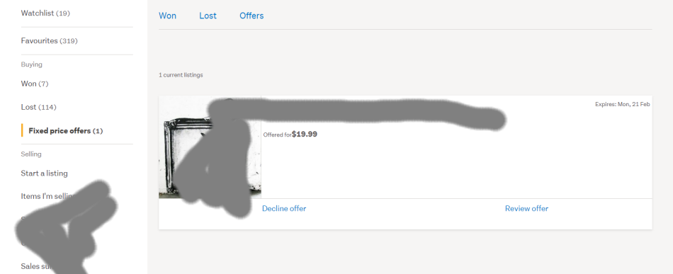 Get same result accessing viewing Fixed Price offers area under "My Trade Me"