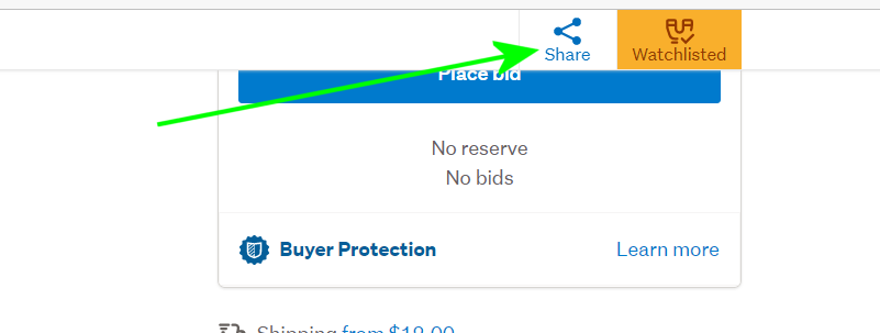 Im not sure wny the share button does not come up next to the watchlist when i scroll either. But i was able to share the listing by emailing the link you provided. Thank you for your assistance much appreciated.