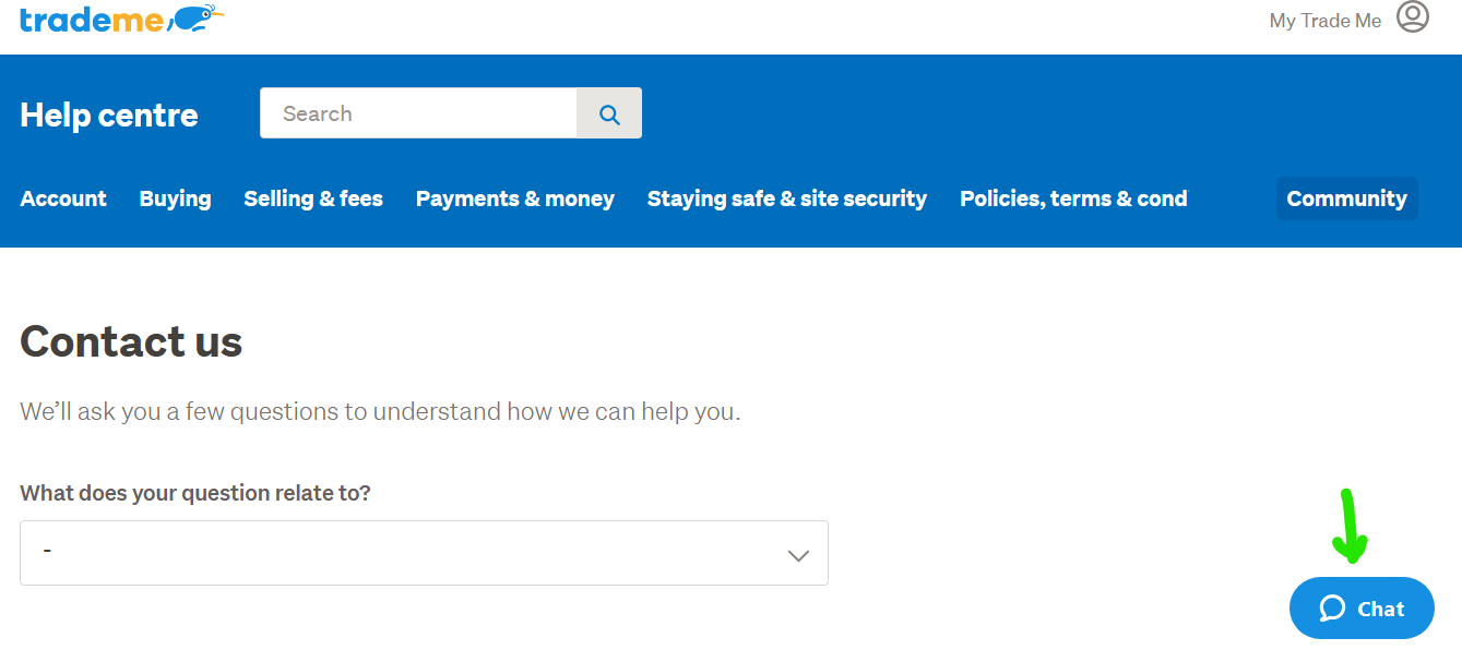 I recommend Gary-NZStocked advice - You can contact a TradeMe Staff member directly for assistance via their "Live Chat" facility.If you go through the 'Contact Us' link at the bottom of this, or any, TM page yes you come to a drop down form however if you give the page a few seconds the 'Chat' bubble will come up in blue at the bottom right of the page.If you type your message in before hitting the 'Start Chat' this allows the operator to reply with an almost instant answer or for further info' ensuring the chat session is a swift experience.The 'Live Chat' manned hrs Monday - Friday are 8:am - 6:30pm & Saturday - Sunday 8:30am - 4:pm.