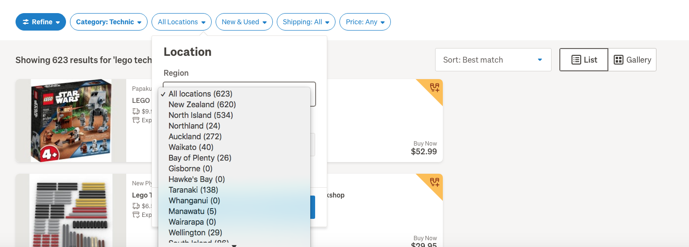 Hi David when searching listings use the location filter in your case select the North Island option then no South Island listings will appear in your search results see the screenshot below from the Trade Me desktop site.