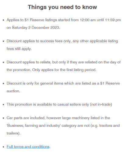 Success fee and listing promotional extra discount terms and conditions – Help - Trade Me