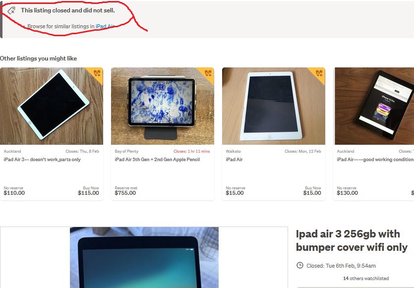 Here is an example from today. This iPad was SOLD. Trade Me says it didn't. The ios App says it didn't. Only Bidbud gets it right and shows the true status of the item.